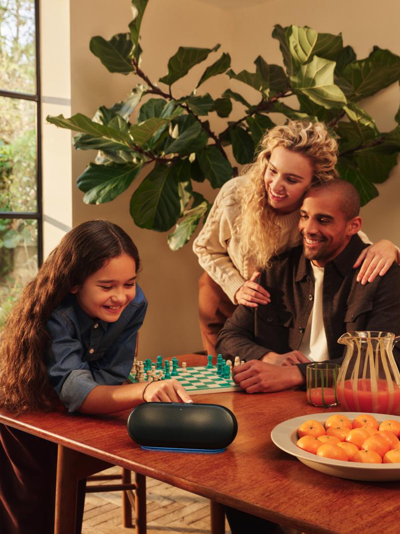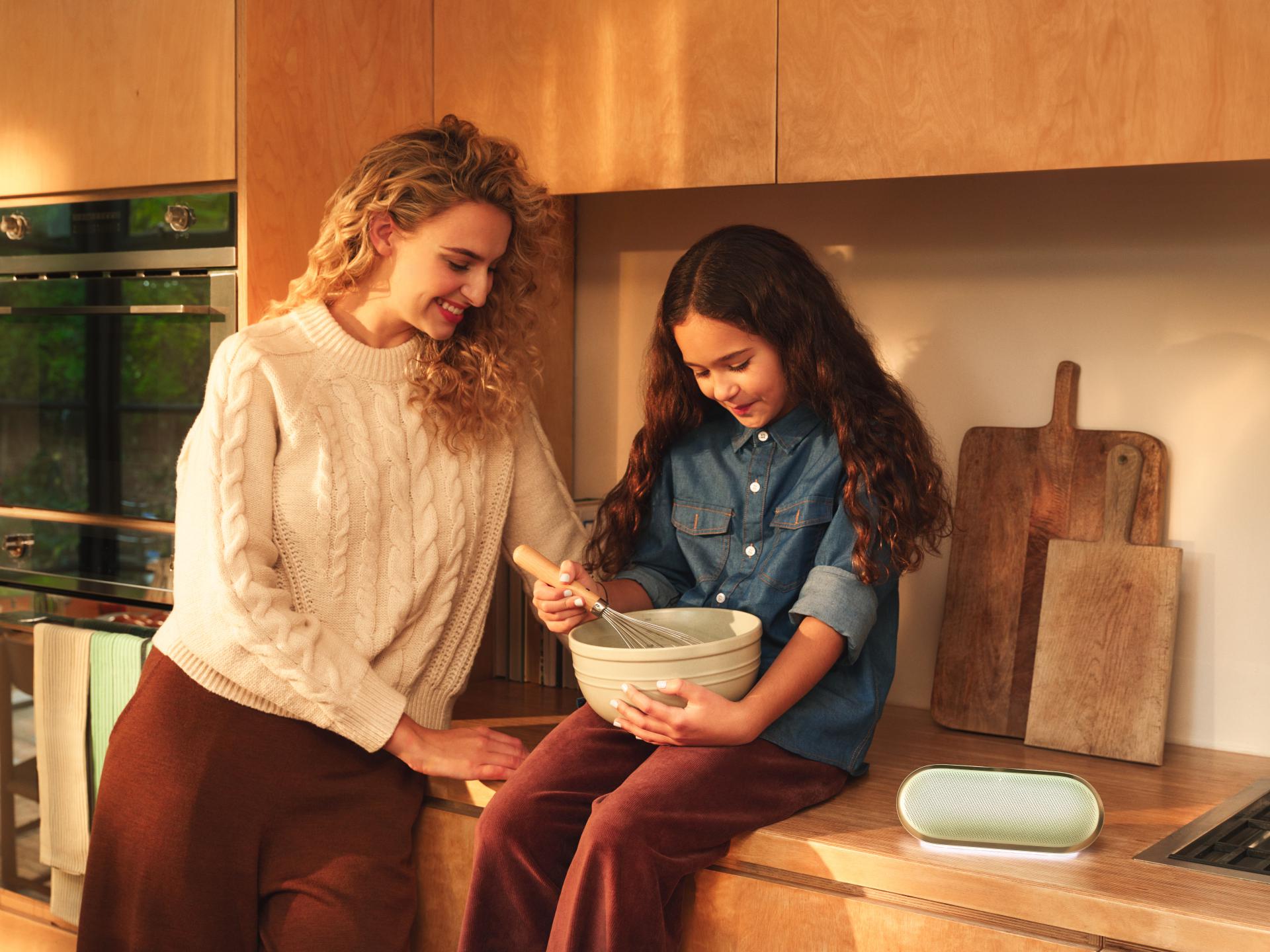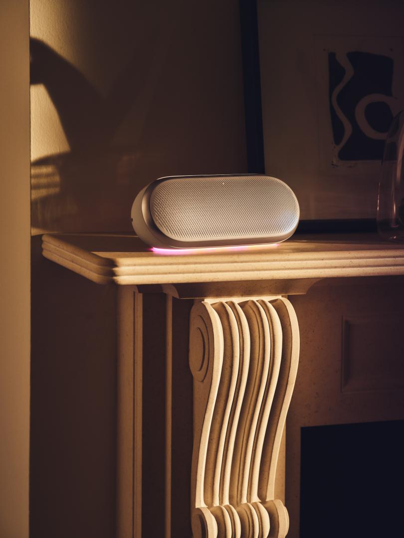 Luna 2 łączy kompaktową formę z solidną konstrukcją opartą na aluminium pochodzącym częściowo z recyklingu. Ergonomiczny kształt oraz lekko pochylona bryła ułatwiają przenoszenie i ustawienie głośnika w różnych przestrzeniach. W kuchni, salonie, na tarasie – Luna 2 odnajdzie się wszędzie.