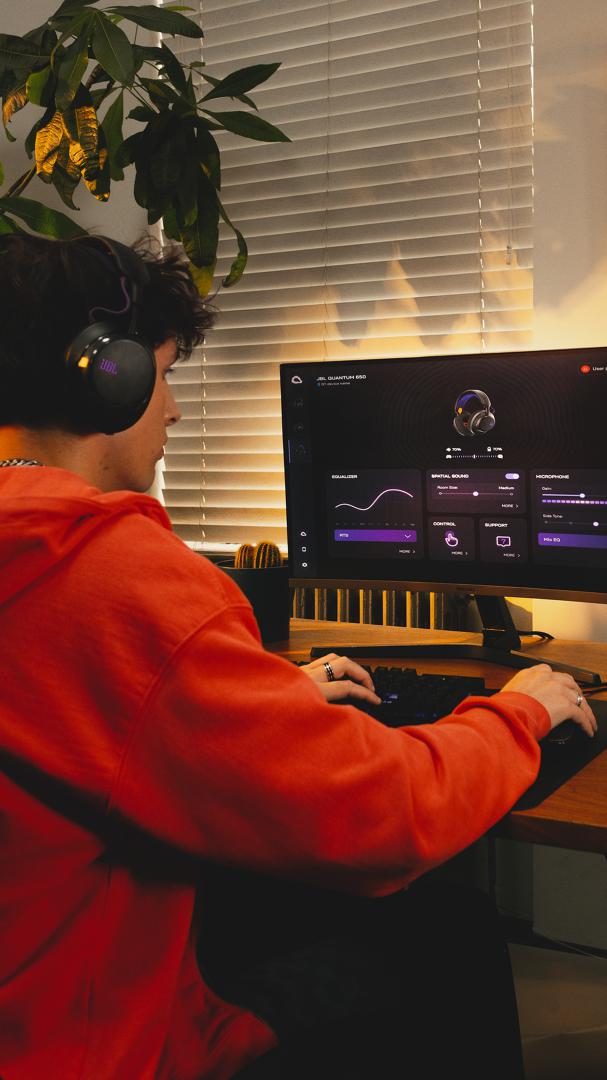 Pulpit nawigacyjny JBL QuantumENGINE różni się w zależności od urządzenia i pozwala dostosować preferowany profil dźwięku, określić miejsca, z których dochodzą odgłosy w grze za pomocą wizualizatora dźwięku w czasie rzeczywistym, zredukować hałas klawiatury, zoptymalizować działanie mikrofonu oraz skonfigurować redukcję hałasu, a także zaktualizować oprogramowanie układowe zestawu słuchawkowego. Działa na wszystkich platformach i umożliwia podłączenie wszystkich zestawów słuchawkowych JBL Quantum jednocześnie.