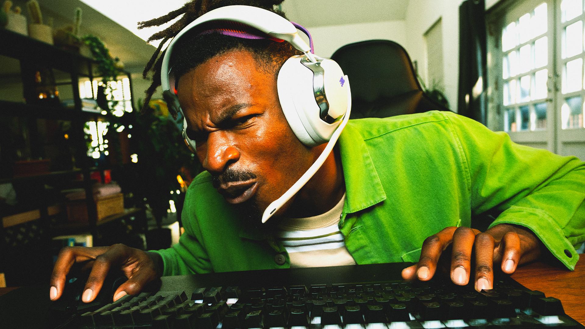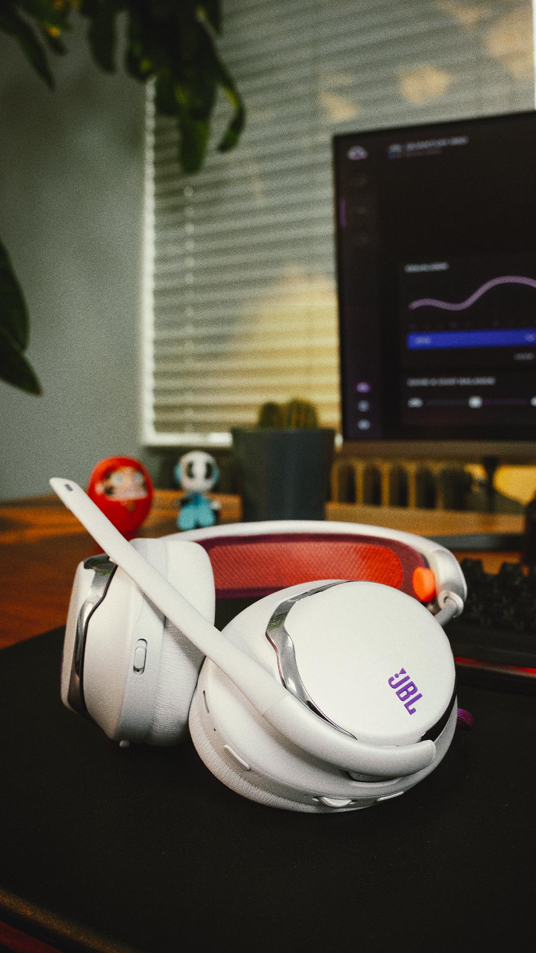 JBL Quantum 950 Wireless to bezprzewodowy, wieloplatformowy zestaw słuchawkowy do gier z adaptacyjną redukcją hałasu.