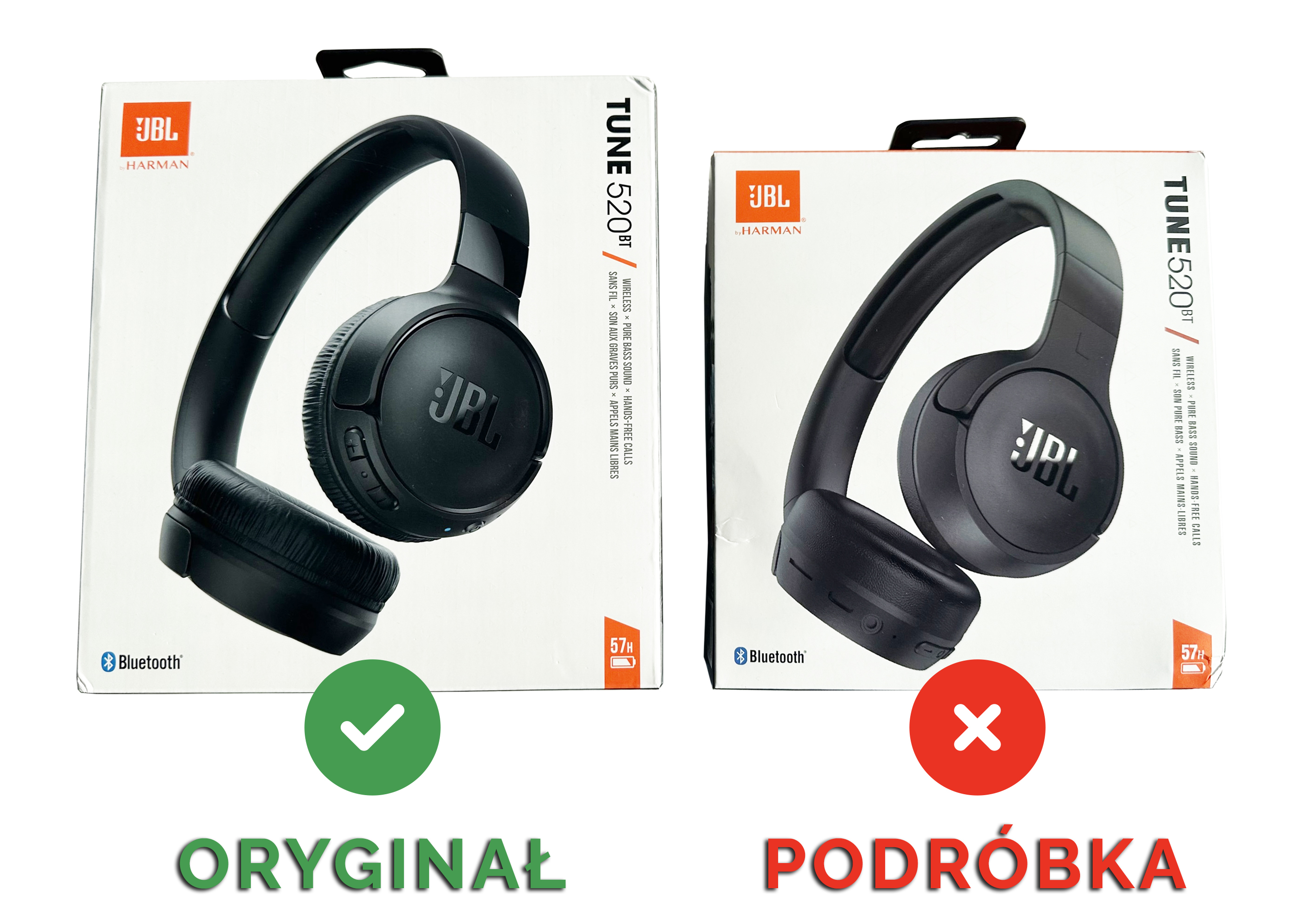 W trosce o naszych Klientów przekazujemy informacje, że w sprzedaży pojawiły się podrabiane słuchawki JBL Tune 520 BT. Oferowane są w cenie zbliżonej do oryginału, co utrudnia ich rozpoznanie. Wszystkich użytkowników naszych produktów oraz tych, którzy w najbliższym czasie planują zakup słuchawek bezprzewodowych przestrzegamy i zachęcamy do zapoznania się z zamieszczonym poniżej krótkim przewodnikiem w tym temacie.